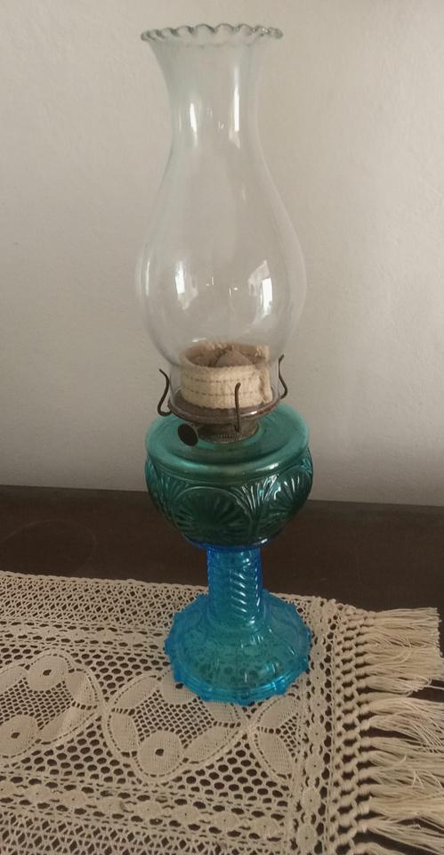 Vendo precioso quinqué antiguo de cristal color azul en perfecto estado. (ver foto). Es en
