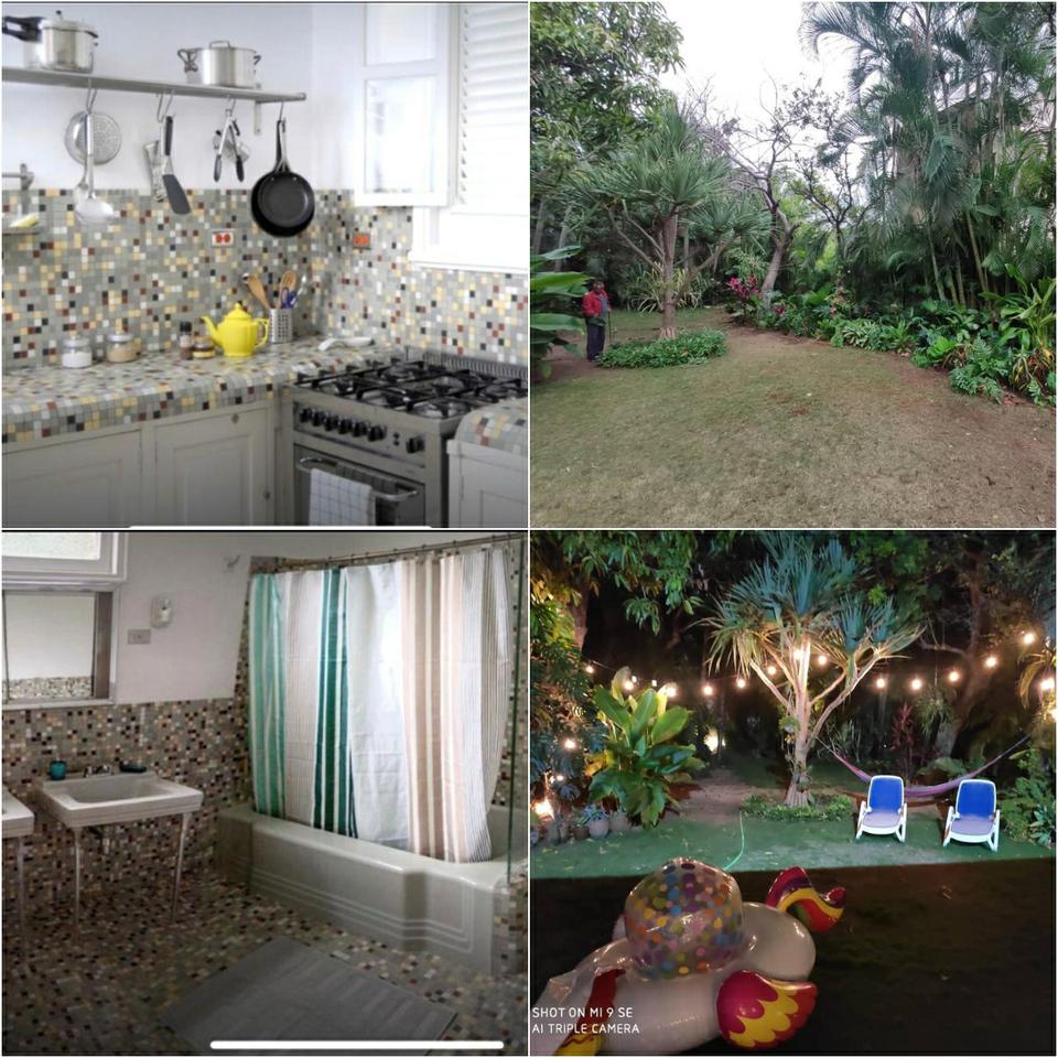 Casa independiente en vedado con jardín ,carpost,garaje,sala,biblioteca comedor, baño,cocina, terraza de cemento al aire libre,y un extenso patio de tierra, planta alta 3 cuartos con sus closet y 3 baños.p.libre ,agua fría y caliente,cisterna propia,y se quedan cosas