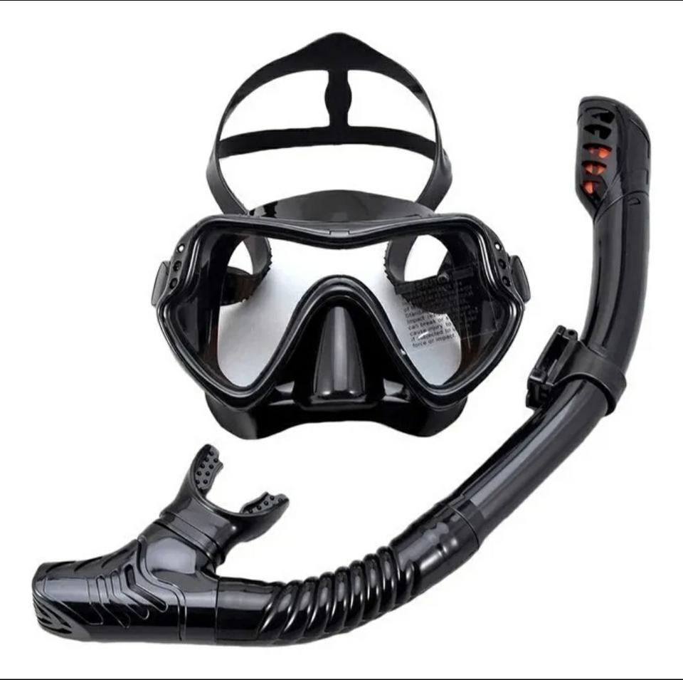 Set compuesto de careta de silicona y cristal templado anti vaho, sistema de doble sello y cierre fácil y seguro y Snorkel de silicona con válvula de seguridad.