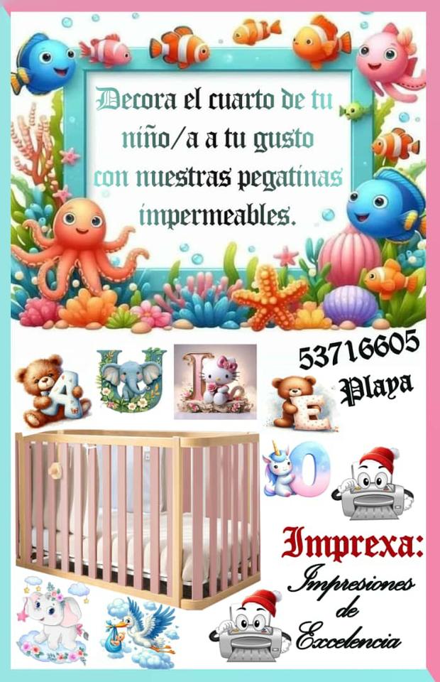 *Pegatinas para decorar el cuarto (con su nombre , temática de su preferencia /y tipo Imágenes o stickers para las gavetas y puertas)
