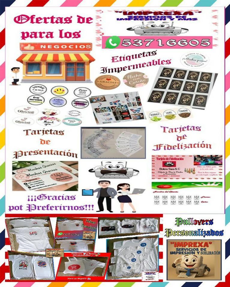 Si está buscando presentarse a través de una tarjeta aquí en IMPREXA: Impresiones de Excelencia le ayudamos Ubicados en el municipio Playa y con mensajeria disponible Estamos abiertos de lunes a viernes para prestarle un servicio de calidad (tanto de Diseño como de Impresión). Recuerde que la primera impresion vale mucho.