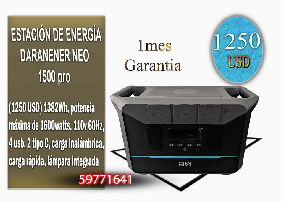 (1200 USD) 1382 Wh potencia máxima 1600W, 110v 60Hz, 4 usb, 2 tipo C, carga rápida y lámpara integrada