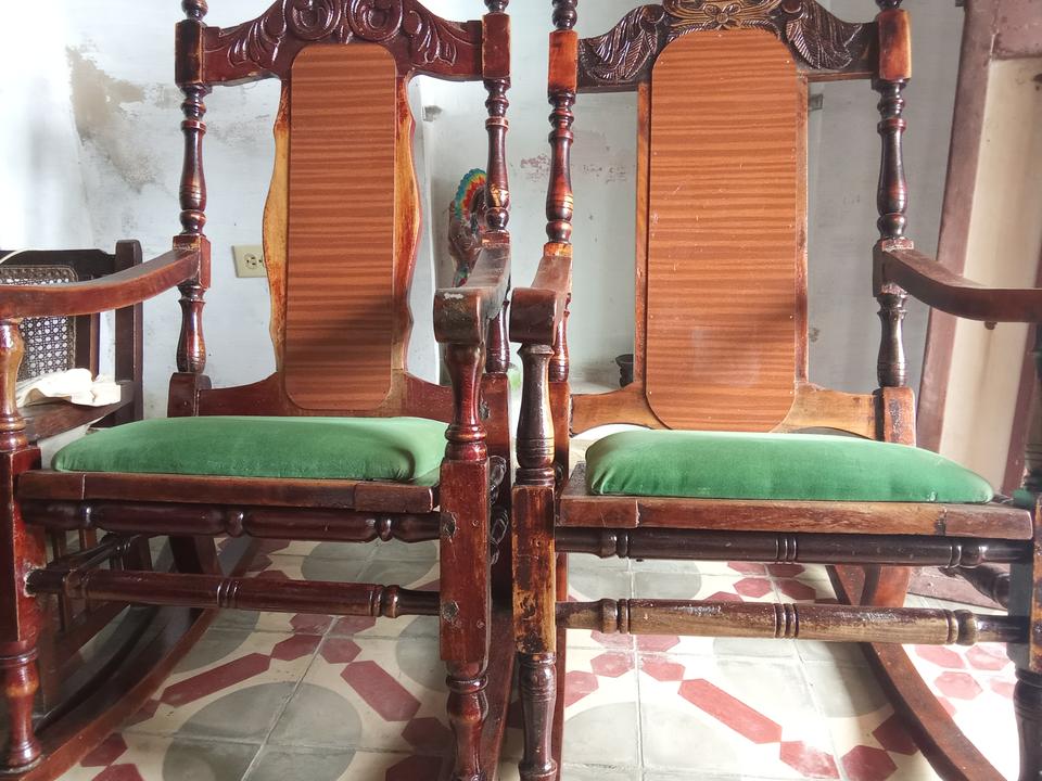 Se venden sillones de madera antiguos, de uso reparados, cedro y caoba con cojines incluidos,
