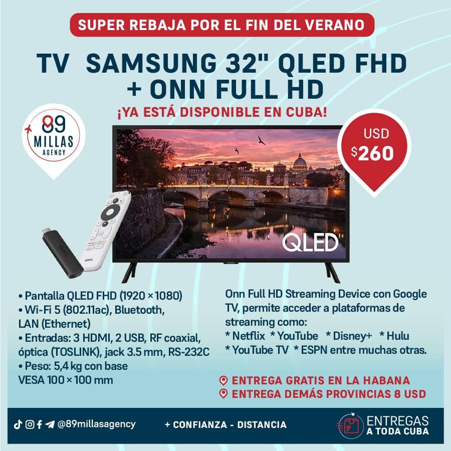 * Televisores: Samsung 32" QLED + ONN Full HD 260, Westinghouse Roku 32" 205.