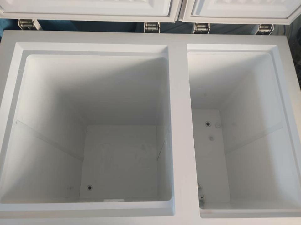 Freezer de 220 V 50 Hz casi nuevo, con muy poco uso. Tiene 2 compartimentos, uno que es nevera para congelar y el más pequeño que es refrigerador, ideal para guardar cosas grandes que no caben en un refrigerador normal.