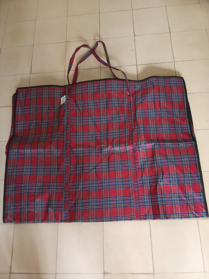 -Vendo maletín rojo a cuadros , grande para 100 lbs. Es nuevo con 70 cm de altura y 90 cm de Largo y 30 Cms de Ancho en usd 6