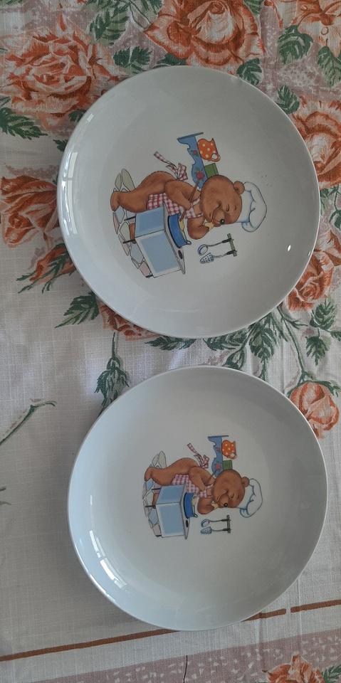 Dos PLATOS ALEMANES DE PORCELANA 19 CM CON DIBUJO INFANTIL 1000 PESOS