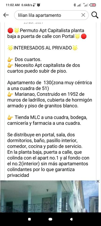 Apartamento en bajos , dos cuartos , piso granito blanco , marquetería en perfectas condiciones.